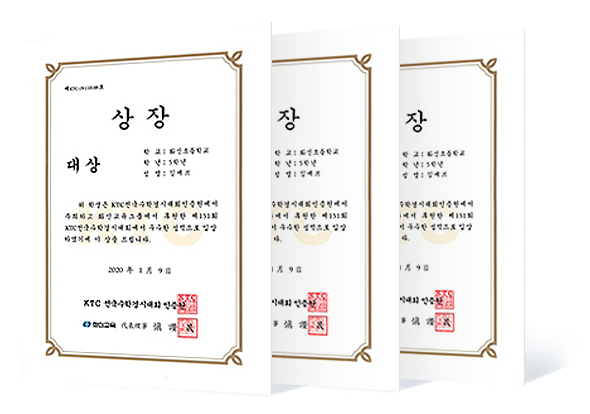 성적 우수자에게는 KTC전국수학경시대회 인증원