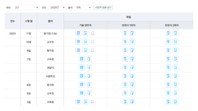 수능, 평가원, 교육청, 사관학교, 경찰대, 사설 모의고사까지!