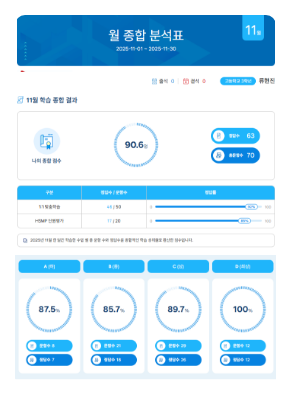 학생 성취도와 성장 흐름을 체계적으로 관리하고 한눈에 확인할 수 있습니다