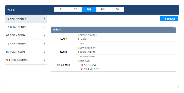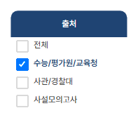 수능, 평가원, 교육청, 사관학교, 경찰대, 사설 모의고사까지!