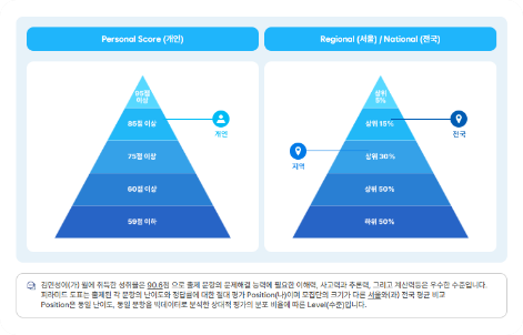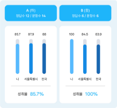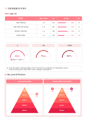 개인 강·약점은 물론, 지역·전국 대비 학습 위치까지 함께 점검합니다.